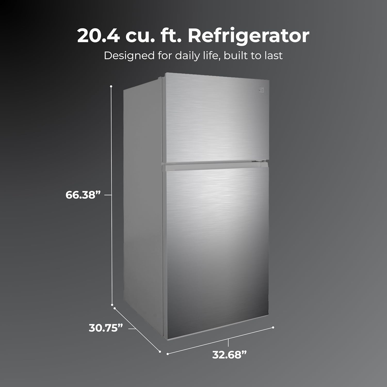 Full Size Capacity Refrigerator: This 33-inch, fingerprint resistant stainless steel refrigerator offers 20.4 cu. ft. of total storage space