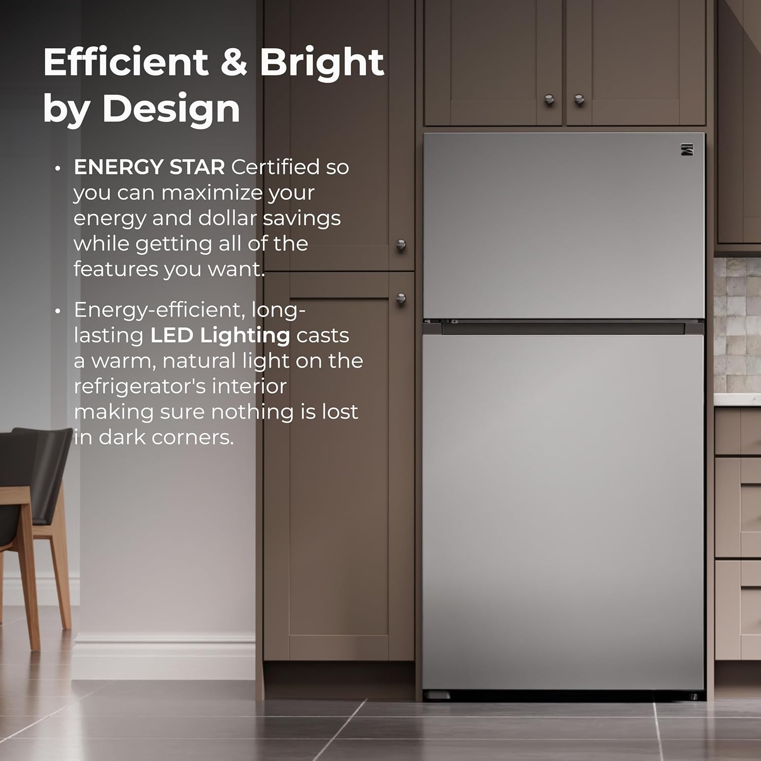 Certified with Factory Installed Icemaker: Long-lasting LED lighting brightens the interior. certified to help save on utilities. Factory installed icemaker gives you ice at the ready with up to 3 lbs. of ice per day